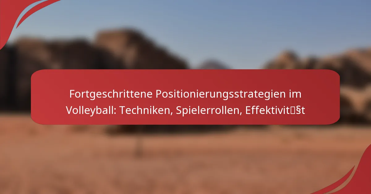 Fortgeschrittene Positionierungsstrategien im Volleyball konzentrieren sich auf die taktische Anordnung der Spieler, um sowohl die individuelle als auch die Teamleistung zu steigern. Durch das Verständnis spezifischer Spielerrollen und den Einsatz effektiver Techniken können Teams ihr Scoring-Potenzial und ihre defensive Stärke verbessern, was letztendlich zu grösserem Erfolg auf dem Spielfeld führt.